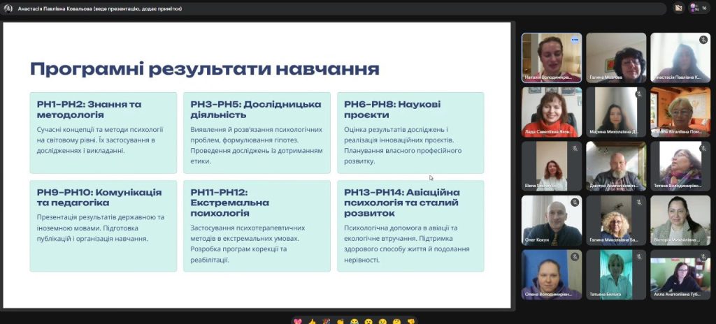 На кафедрі авіаційної психології та управління людським фактором відбулося фахове обговорення освітньо-наукової програми «Психологія» третього (освітньо-наукового) рівня вищої освіти за спеціальністю С4 «Психологія».